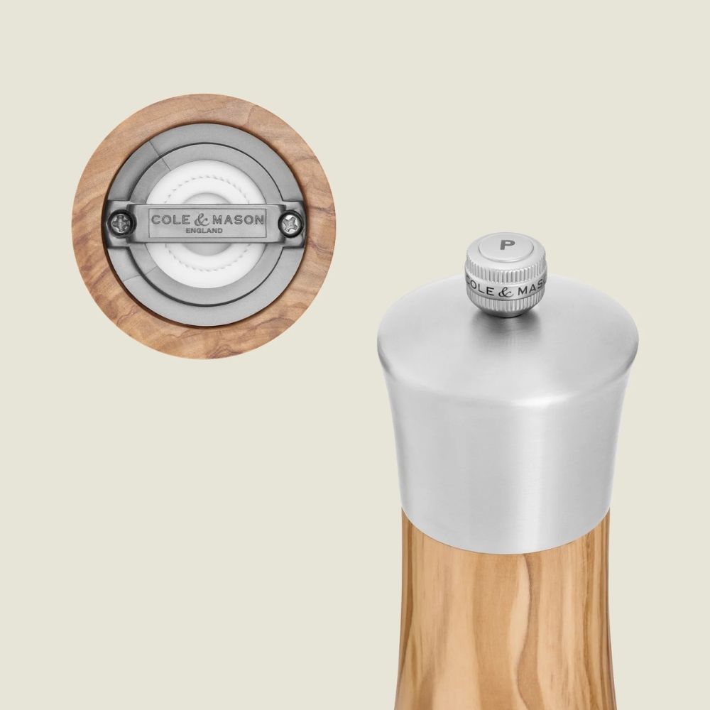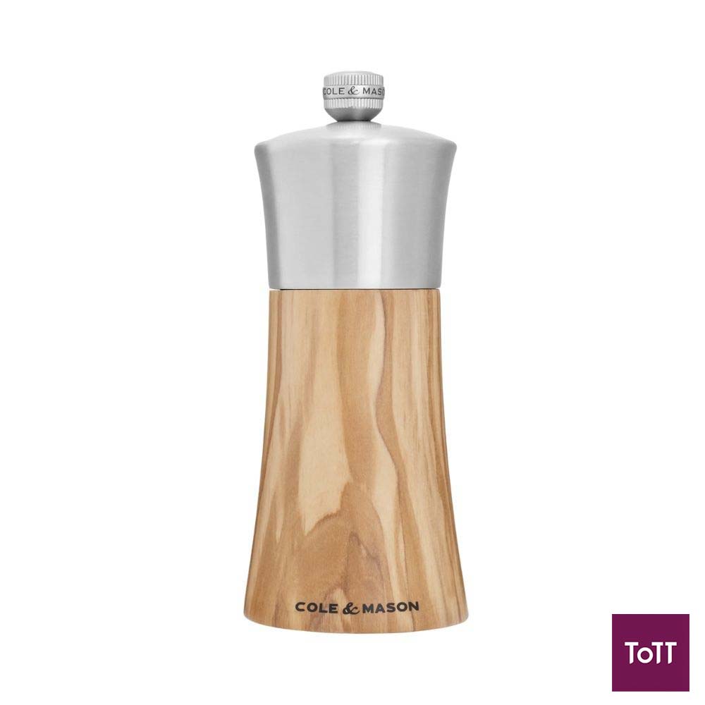 This elegantly crafted mill features a stainless steel top and olive wood body. It offers adjustable grind settings and a corrosion-resistant ceramic mechanism.