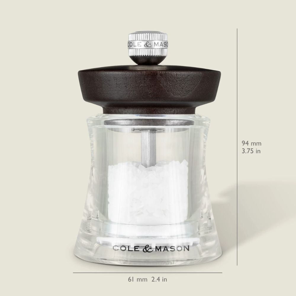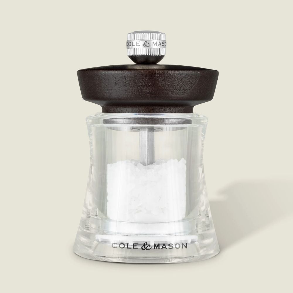 The Holborn Mills, crafted from durable acrylic and high-grade beechwood, feature a bold contemporary design. They offer adjustable grind settings, a carbon steel pepper mechanism, and a corrosion-resistant mechanism.