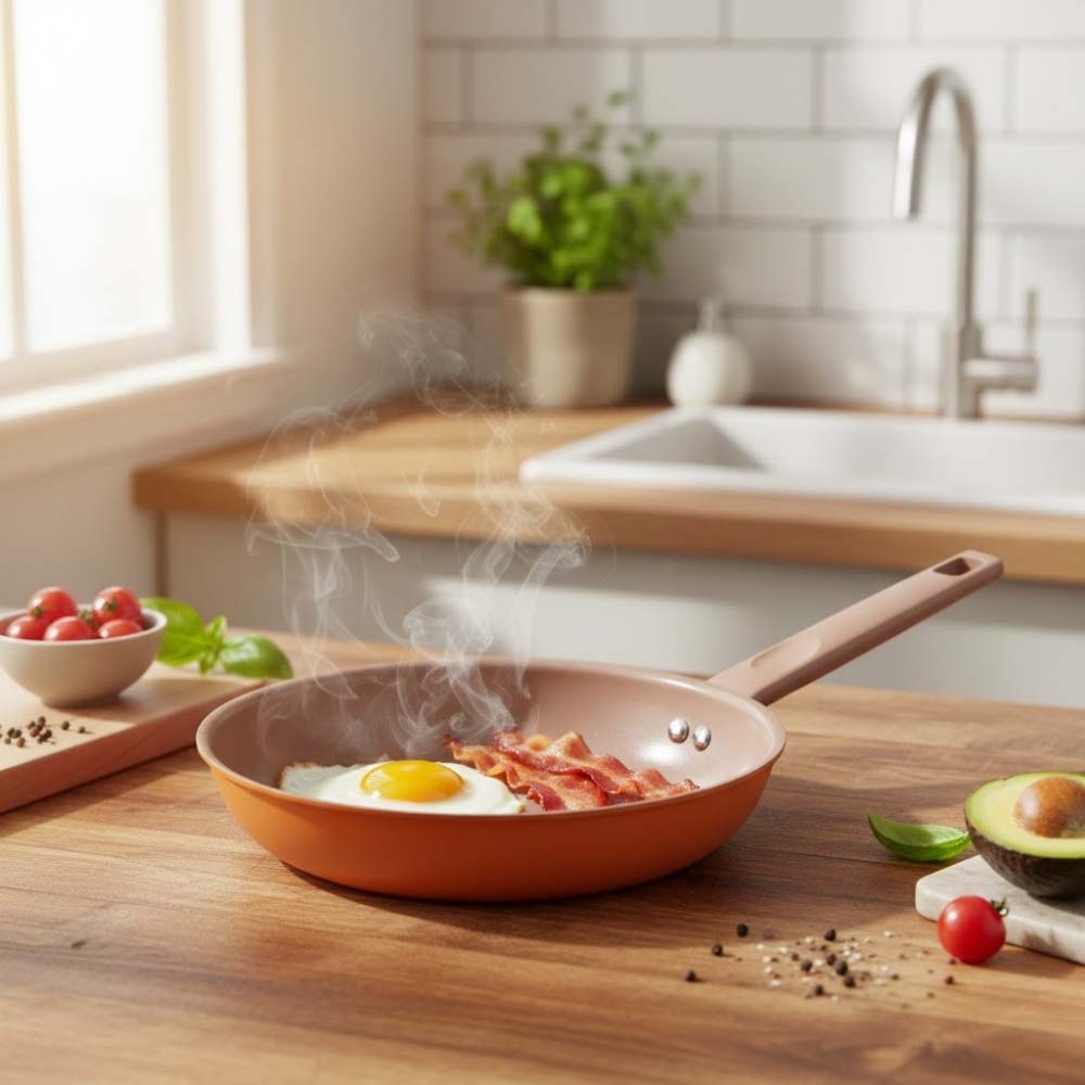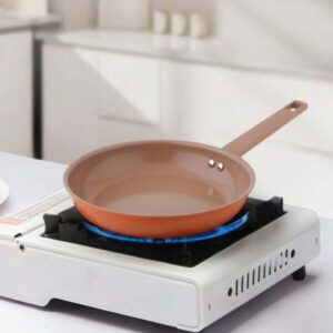 - Durable aluminium nonstick ceramic frypan ensures even heat distribution.